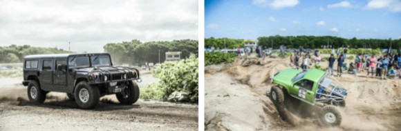 4×4車輌の足回りのストロークを競う競技で、犬しょん計算法によるポイントで勝敗が決定します。